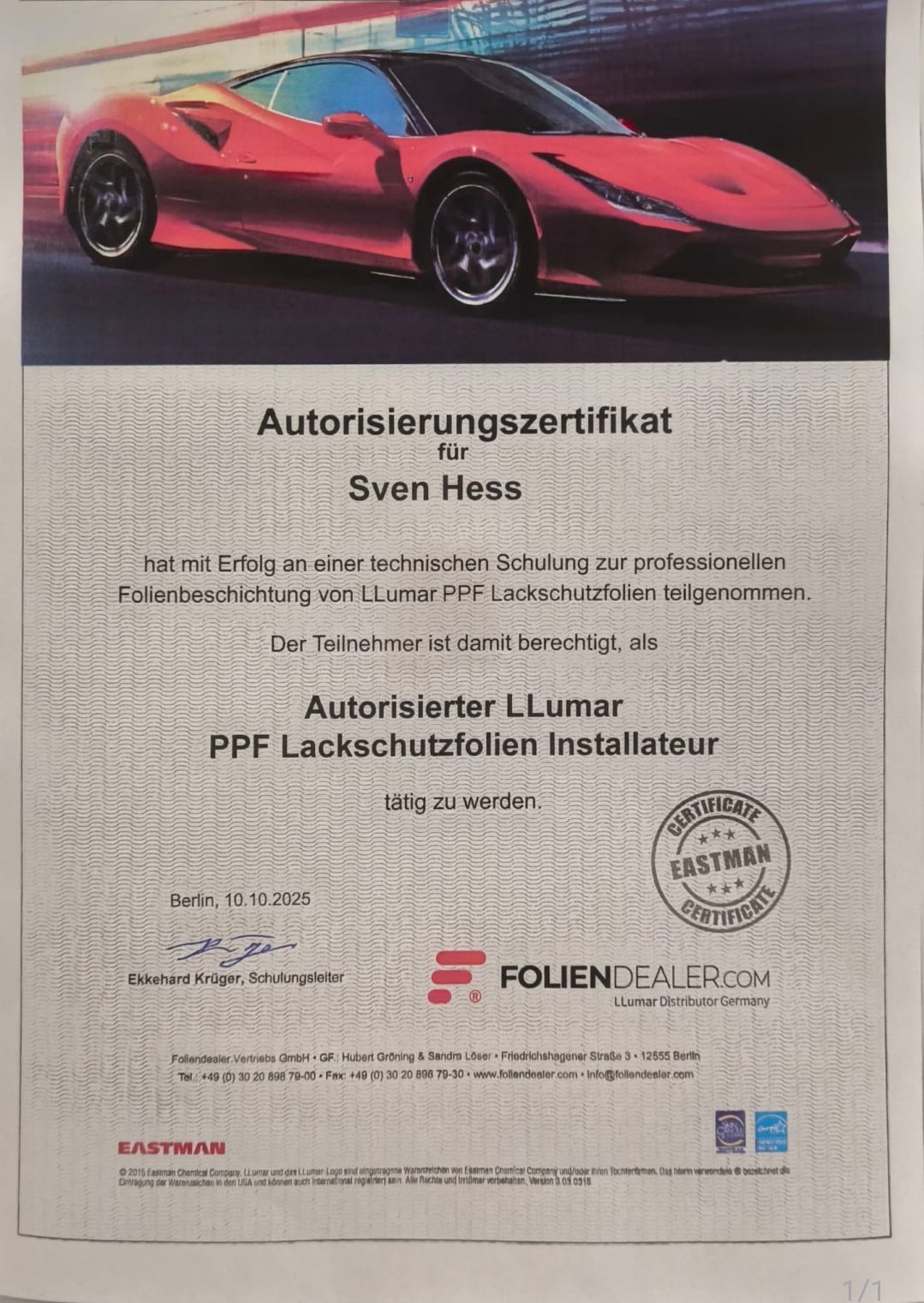 5-Jahres-Herstellergarantie. Die Preise für die Anwendung richten sich nach der Größe des Fahrzeugs. Profi Sven Hess berät Sie gerne.